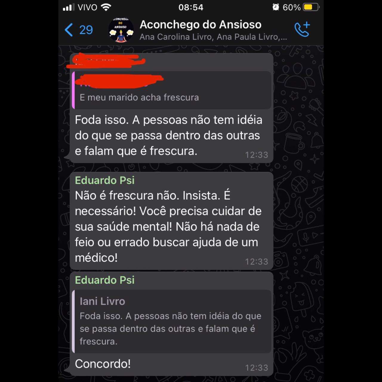 Estou aguardando você em nosso grupo ”Aconchego do Ansioso”
