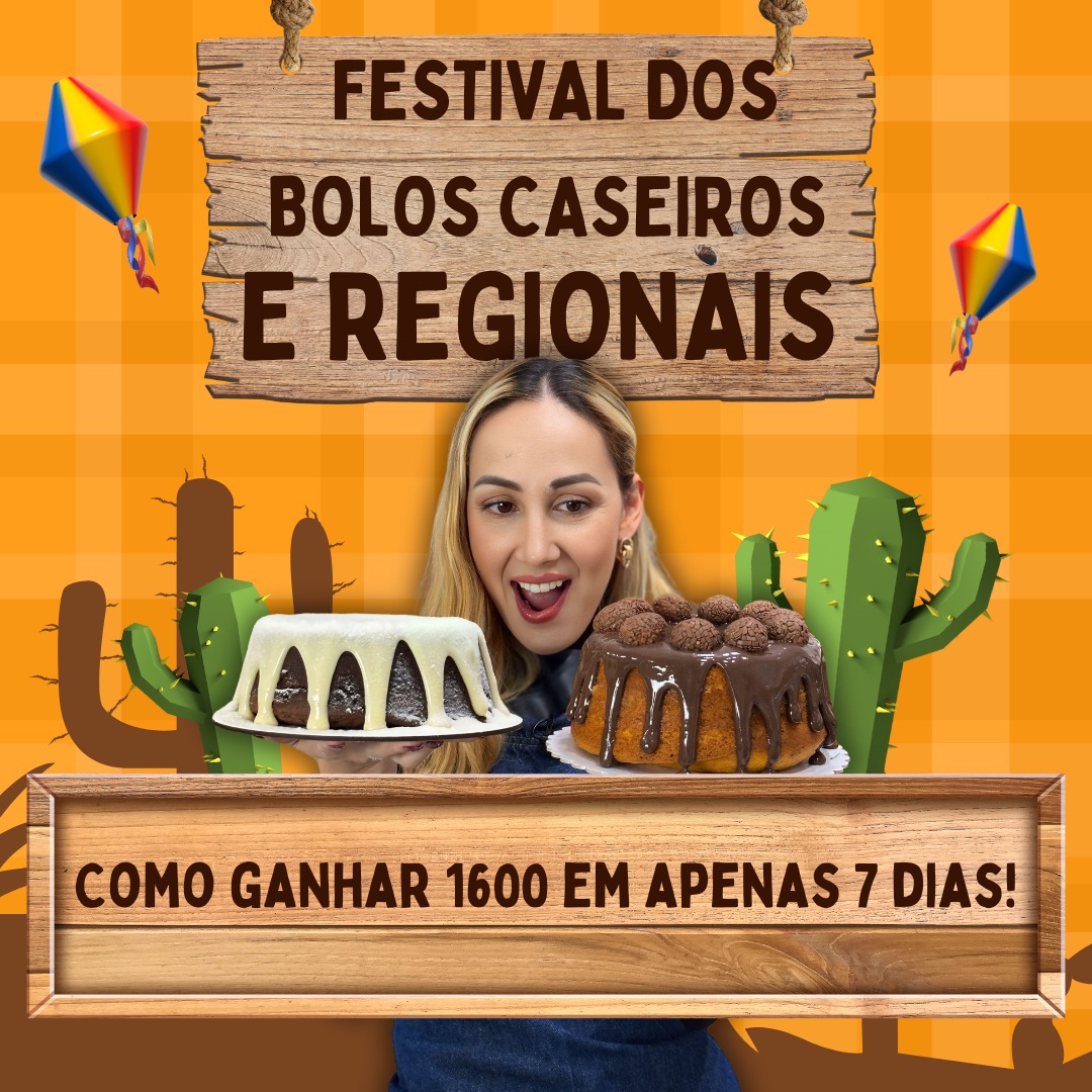 Sua primeira aula gratuita do minicurso Festival dos Bolos Caseiros e Regionais chegará em breve!